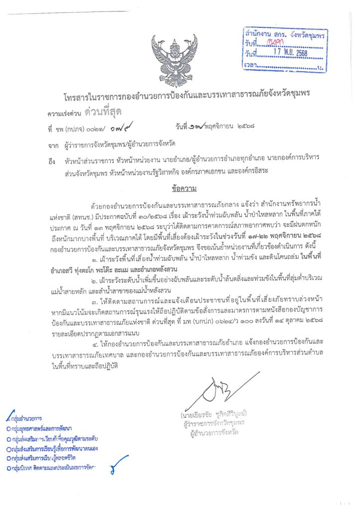 เรื่องอื่นๆ ประกาศกองอำนวยการป้องกันและบรรเทาสาธารณภัยจังหวัดชุมพร ฉบับที่ 30/2568 17 พฤศจิกายน 2025 จิรวัฒน์ ทองตระการ ประกาศกองอำนวยการป้องกันและบรรเทาสาธารณภัยจังหวัดชุมพร ฉบับที่ 30/2568 Post Views: 17 FacebookFacebookXTwitterLINELine