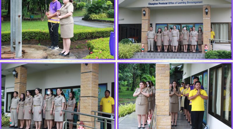 วันจันทร์ที่ 30 มิถุนายน 2568 นางสาวประไพศรี คงตระกูล ผู้อำนวยการสำนักงานส่งเสริมการเรียนรู้ประจำจังหวัดชุมพร พร้อมด้วยบุคลากร เข้าแถวเคารพธงชาติ ร้องเพลงชาติ สวดมนต์ไหว้พระ ร้องเพลงสรรเสริญพระบารมี ณ สำนักงานส่งเสริมการเรียนรู้ประจำจังหวัดชุมพร