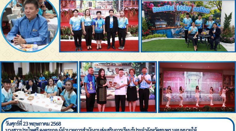 วันศุกร์ที่ 23 พฤษภาคม 2568 นางสาวประไพศรี คงตระกูล ผู้อำนวยการสำนักงานส่งเสริมการเรียนรู้ประจำจังหวัดชุมพร มอบหมายให้ นายประยงค์ ขันทอง ผู้อำนวยการศูนย์ส่งเสริมการเรียนรู้ระดับอำเภอเมืองชุมพร และบุคลากร เข้าร่วกิจกรรมสภากาแฟ “Beautiful friday coffee” โดยนายเธียรชัย ชูกิตติวิบูลย์ ผู้ว่าราชการจังหวัดชุมพร เป็นประธานเปิดกิจกรรม ณ ห้องประชุมอาภากร ชั้น 5 อาคารผู้ป่วยนอกและอุบัติเหตุ โรงพยาบาลชุมพรเขตรอุดมศักดิ์