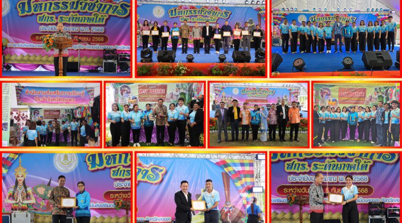 วันศุกร์ที่ 5 กันยายน 2568 นางสาวประไพศรี คงตระกูล ผู้อำนวยการสำนักงานส่งเสริมการเรียนรู้ประจำจังหวัดชุมพร มอบหมายให้ผู้อำนวยการศูนย์ส่งเสริมการเรียนรู้ระดับอำเภอ และบุคลากร เข้าร่วมมหกรรมวิชาการ สกร.ระดับภาคใต้ ประจำปีงบประมาณ พ.ศ.2568 โดยนายสุรพงษ์ จำจด อดีตผู้ตรวจราชการกระทรวงศึกษาธิการ เป็นประธานในพิธีเปิด ระหว่างวันที่ 3 – 5 กันยายน 2568 ณ สถาบันส่งเสริมการเรียนรู้ภาคใต้ ตำบลเขารูปช้าง อำเภอเมืองสงขลา จังหวัดสงขลา
