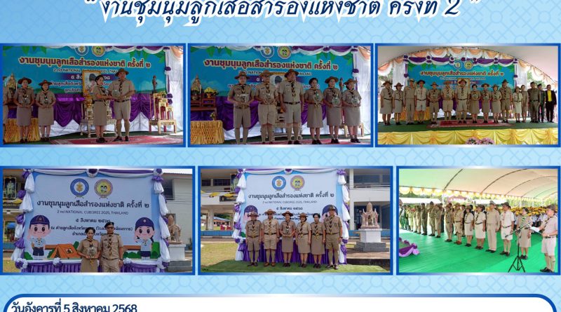 วันอังคารที่ 5 สิงหาคม 2568 นางสาวประไพศรี คงตระกูล ผู้อำนวยการสำนักงานส่งเสริมการเรียนรู้ประจำจังหวัดชุมพร มอบหมายให้ นางสาวพิกุลพรรณ โลภาศ ผู้อำนวยการศูนย์ส่งเสริมการเรียนรู้ระดับอำเภอท่าแซะ เข้าร่วมงานชุมนุมลูกเสือสำรองแห่งชาติ ครั้งที่ 2 เพื่อเป็นการส่งเสริมลูกเสือสำรองให้รักและศรัทธาในกระบวนการลูกเสือ และเป็นการพัฒนาเยาวชน ให้มีระเบียบวินัย ณ ค่ายลูกเสือจังหวัดชุมพร โรงเรียนวัดน้อมถวาย อำเภอเมืองชุมพร จังหวัดชุมพร